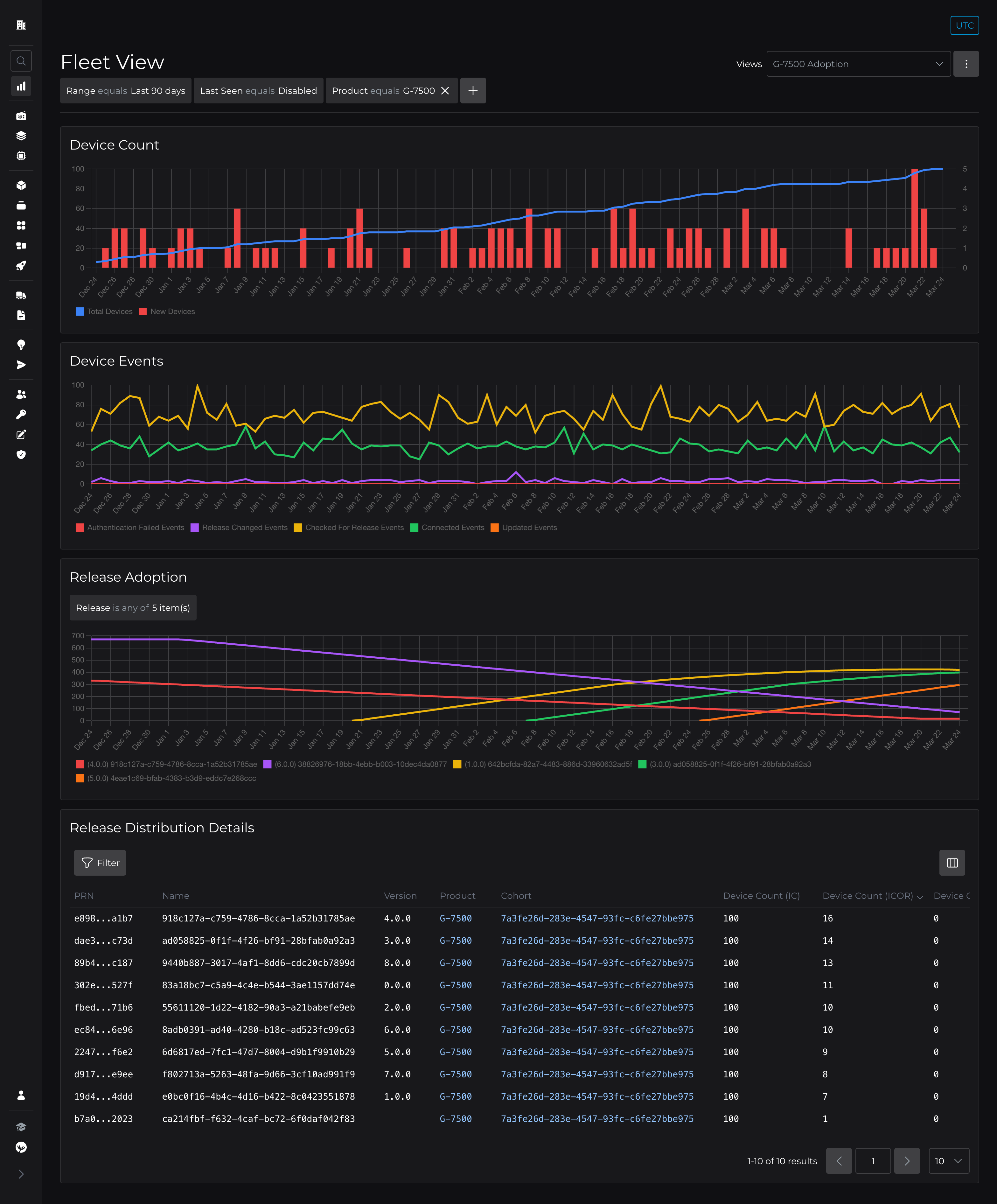 The Peridio Console Fleet View provides unprecedented visibility into your device fleet's health, deployment status, and operational trends. This feature enables better decision-making through instant insights.