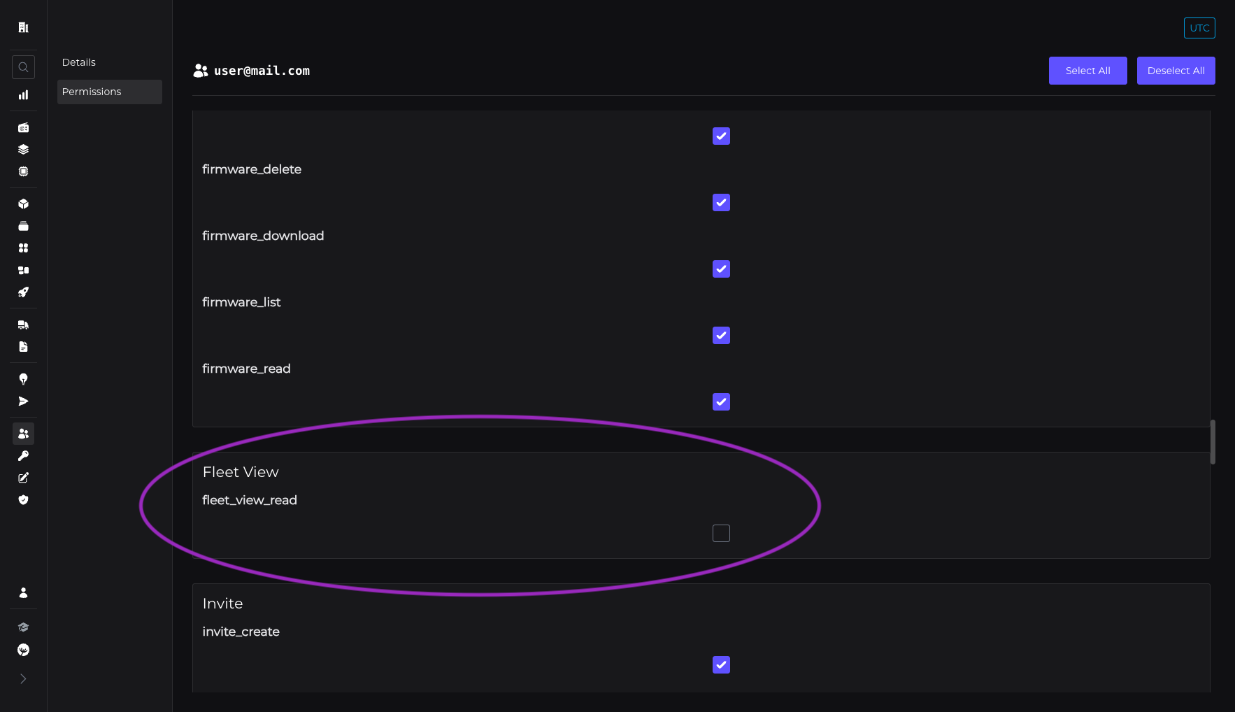 To view the Fleet View, a user must have the fleet_view_read permission.